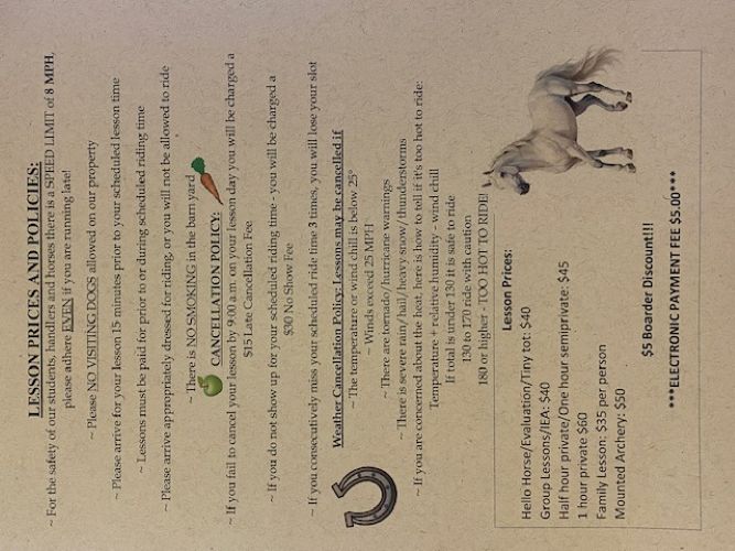 Purchase Horse boarding or Riding lessons here: