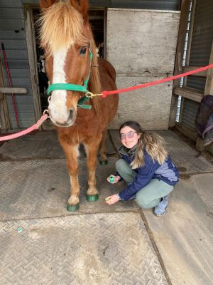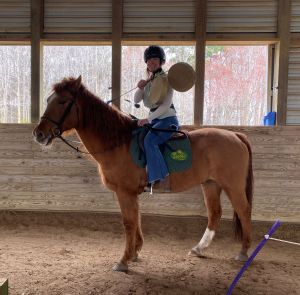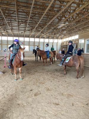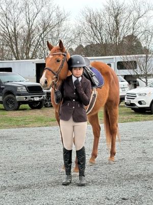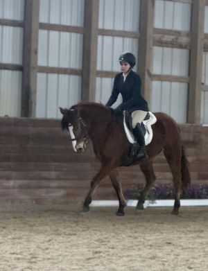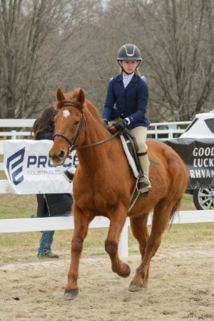 "Novice": this rider knows basic parts of the horse and tack. They are comfortable tacking and untacking the horse without assistance. They are learning to canter while remaining balanced and in control of the horse. They are understanding their leads and can walk, trot, canter in both the full and half seat position. This rider has been introduced to small jumps.