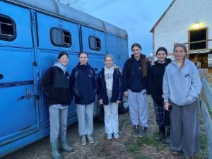 "Intermediate 1": this rider shows seriousness in their riding and has sound equitation skills. Can ride w/t/c with ring shapes and simple changes, knows what diagonal or lead they are on and can correct quickly. can stop the horse from any gait. This rider has an independent seat and can ride without stirrups and is ready to be introduced to the basic principles of dressage and jumping. This rider is gaining knowledge in stable management and abides by the rules of the ring and emphasizes safety on and around horses.